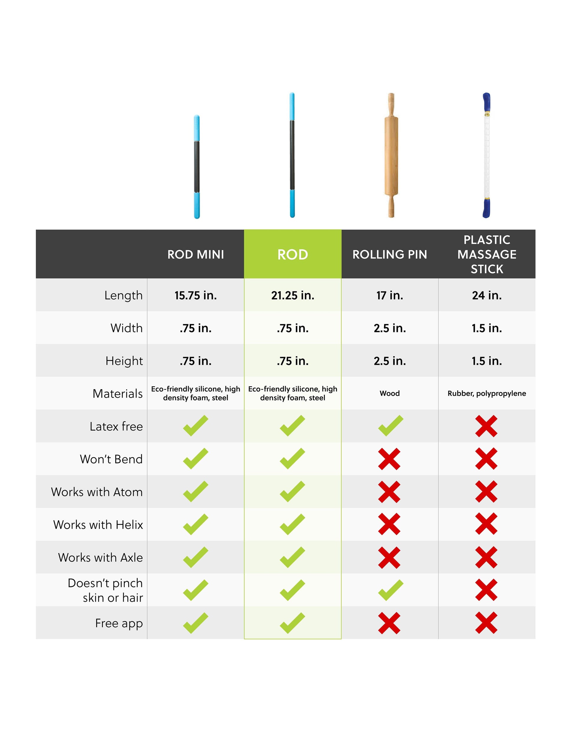 A thin, portable myofascial release tool that lets you customize your level of pressure to a tee? Don’t mind if I do! The Rod leaves the competition in the dust with its thoughtful engineering, high-quality materials and steel-core control.